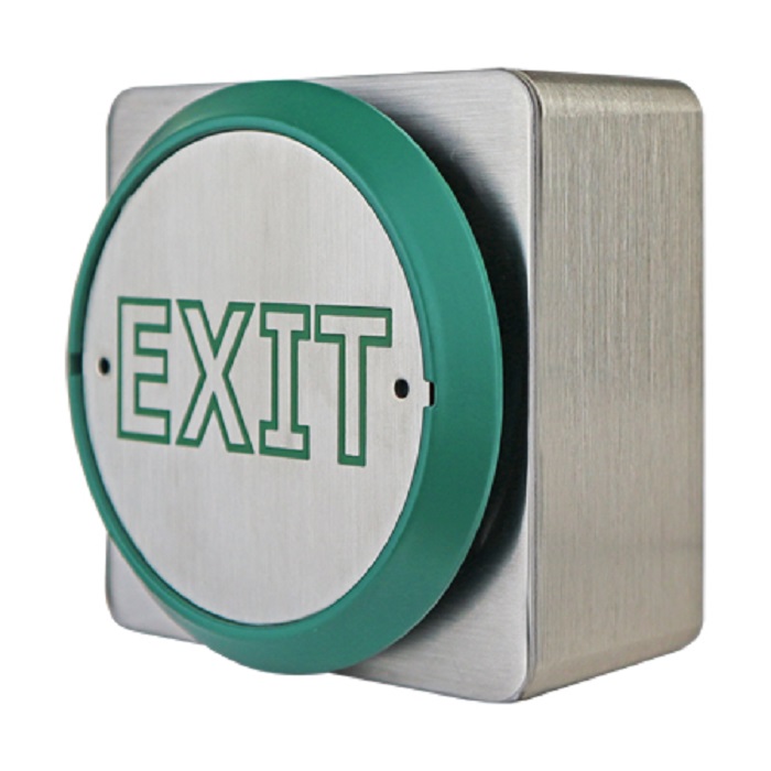 Robust sparkkontakt i rostfritt stål för utanpåliggande montage med EXIT-text. Hela tryckplattan är "aktiv", perfekt för de miljöer där det kan vara problem att ha en liten tryckknapp t.ex. sjukhus, restauranger, skolor och andra publika miljöer. Två utgångar (1 NO och 1 NC). Dimensioner (L x B x H): 85 x 85 x 42 mm. IP53. Strömförsörjning: 12 VDC. CDVI