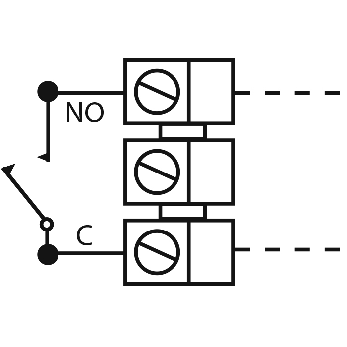 Microswitch NO / NC för AK108 och AK250. Används vid behov för NO- eller NC-kontaktfunktion i AK108 och AK250 eller som en extra mikrobrytare i AK250. Svart = C, Blå = NO, Grå = NC