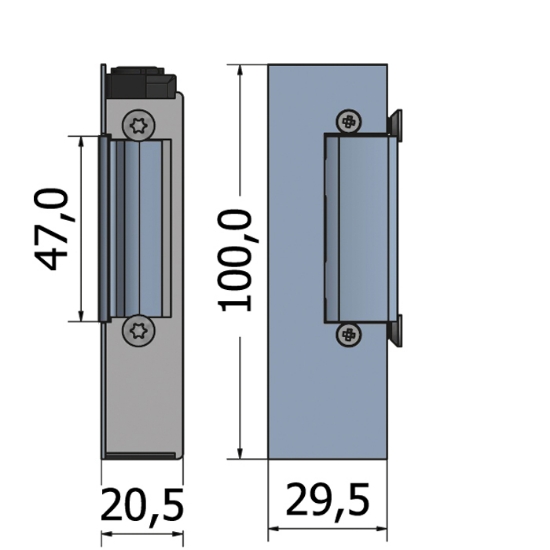 Beskrivning: Inbrottsskyddande förstärkningsbehör för utåtgående aluminiumdörrar med smalprofillås. Förstärkningsbehören har en ”kopplande” funktion, d v s i form av ”dubbar” som slår in i dörrkarmen då dörren stängs. Urtag är gjorda för ASSA 3580 respektive långskylt. Material: Aluminium Mått: 8x100x330 Yta: Naturelox alt. brunelox