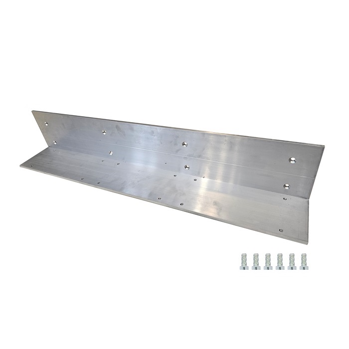 Monterings-/förstärknings-vinkel för FD20. NOT: Monteringsplatta art.nr. 220358698 ska inte användas ihop med denna platta. Plattan har förgjorda och gängade hål för infästning av automatiken samt medföljande skruvar är anpassade för att inte sticka ut på baksidan. Hål för infästningen i underlaget är gjorda, se skiss, men lämpliga skruv för detta medföljer ej.