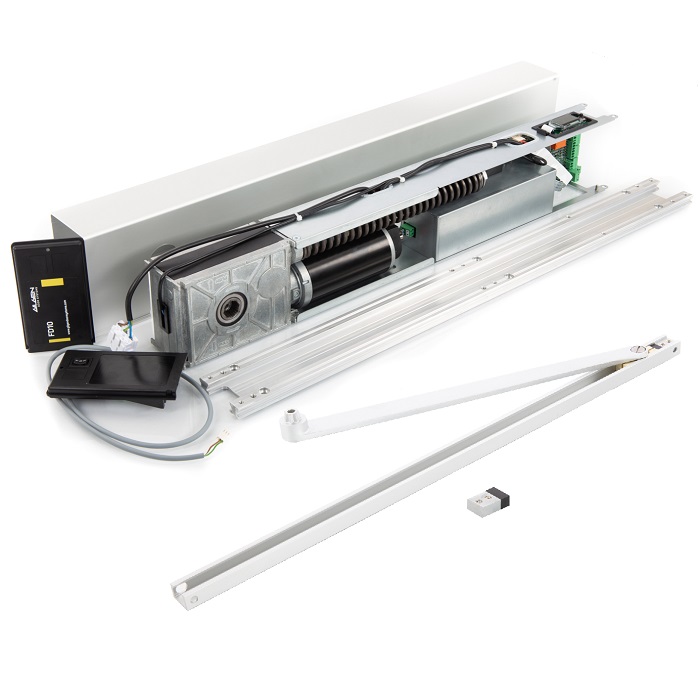 Dörrsautomatik för slagdörrar. FD10 klarar dörrvikter på upp till 150 kg och dörrbredder på mellan 730 – 1100mm. Mått: H70xB730xD125 mm. EN16005, DIN 18650. Kan monteras på karm eller dörrblad. FE/LE, vindlast etc. inkluderat som standard. Mycket tyst gång och lättöppnad för hand. Lev. med monteringsplatta, normal arm och aluminium färgad kåpa.