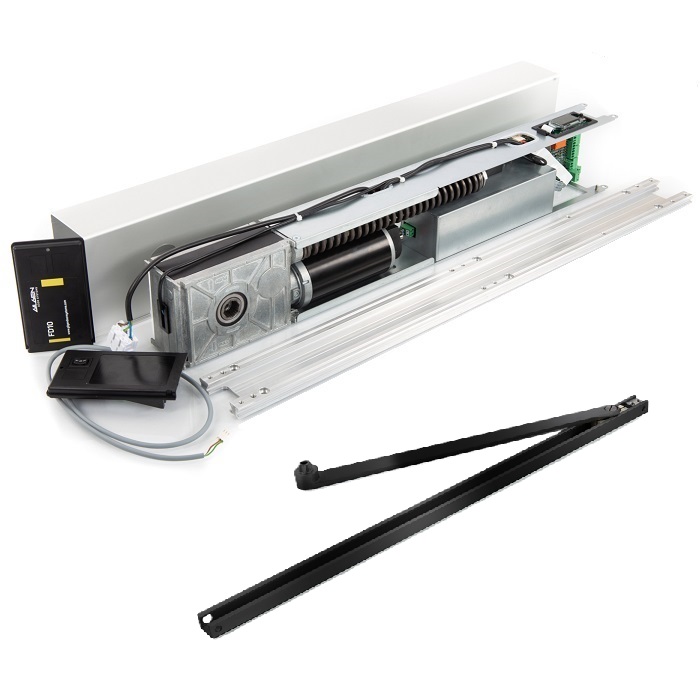 Paket innehållande 1st FD10 drivenhet artikelnr: 220FD10899 och 1st RG - svart glidskena med arm för montering av FD10/FD20 på karm artikelnr: 220164ED165.