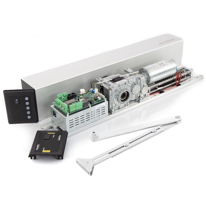 Dörrsautomatik för slagdörrar. FD10 klarar dörrvikter på upp till 150 kg och dörrbredder på mellan 730 – 1100mm. Mått: H70xB730xD125 mm. EN16005, DIN 18650. Kan monteras på karm eller dörrblad. FE/LE, vindlast etc. inkluderat som standard. Mycket tyst gång och lättöppnad för hand. Lev. med monteringsplatta, normal arm och aluminium färgad kåpa.