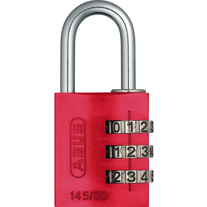 Lås av massiv aluminium med anordiserat ytskikt – korrosionsbeständigt Fjädrad bygel som gör det lättare att ställa in öppningskombinationen 145/20 och 145/30: tresiffrig sifferkod som kan väljas fritt 145/40: fyrsiffrig kod som kan väljas fritt Bekväm att hantera utan nyckel och med låg vikt Lätt att hitta känna igen genom intensiva färger