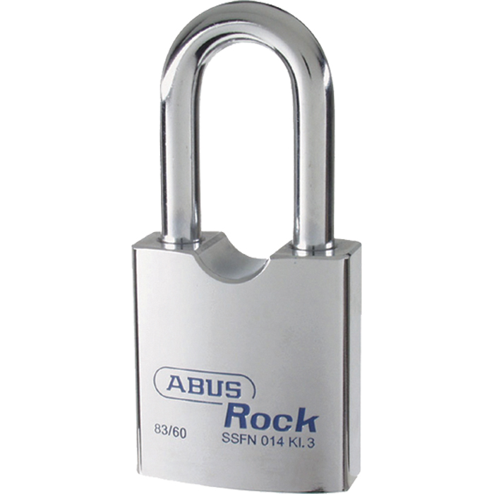 ABUS Rock 83/60 är ett av de kraftigaste hänglåsen på marknaden. Hänglåset är godkänt i klass 3 och har en speciell NanoProtect-ytbehandling, vilket gör att det inte korriderar. En stor fördel med samtliga hänglås i ABUS Rock 83/60-serien är att de låses med vanliga ovala låscylinder, vilket innebär att man kan få hänglåset med en låscylinder som passar till sina befintliga nycklar
