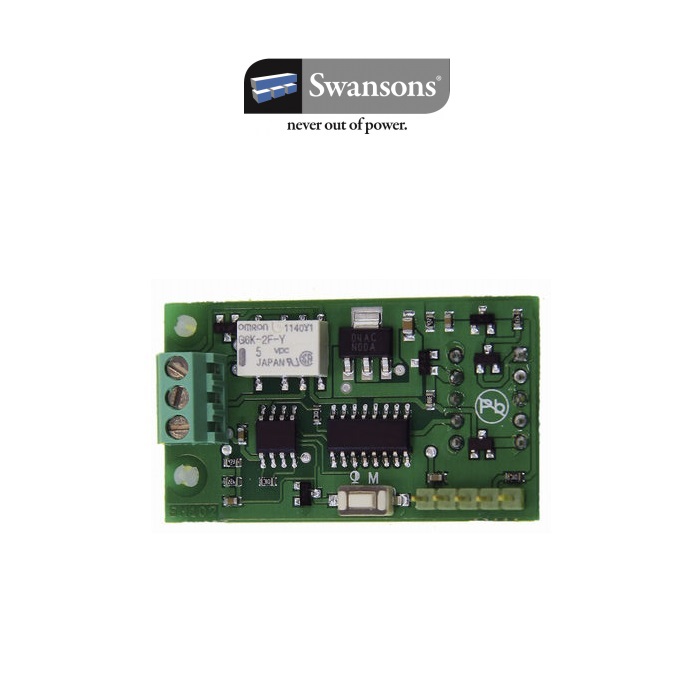Swansons larmkort SM102 för strömförsörjningsaggregat SM40. Övervakar laddningsspänningen och batterikretsen samt lågbatterispänningslarm. Gemensam reläutgång (C-NC-NO).
