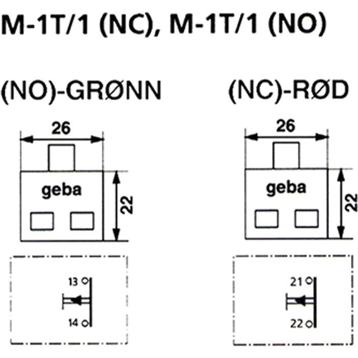 Mikrobrytare för MS-APZ normal öppen (NO) GEBA Grön