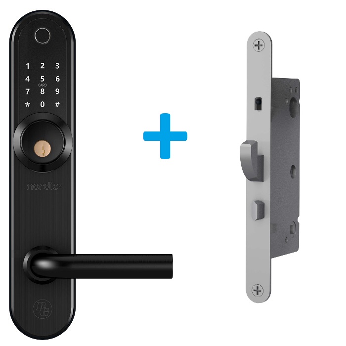 Låset är robust, modernt och slimmat i sin design för att vara så diskret som möjligt på dörren - (38 mm x 280 mm) Gratis app på svenska, skicka koder eller e-nycklar, tidsbestäm giltlighetstid, passageläge, notifikationer, apple watch, amazon alexa, google assistant. Öppna med fingeravtryck (200st), kod (150st), RFID (200st), bluetooth eller wifi (tillval gateway). Mekanisk nyckel alt. powerbank.