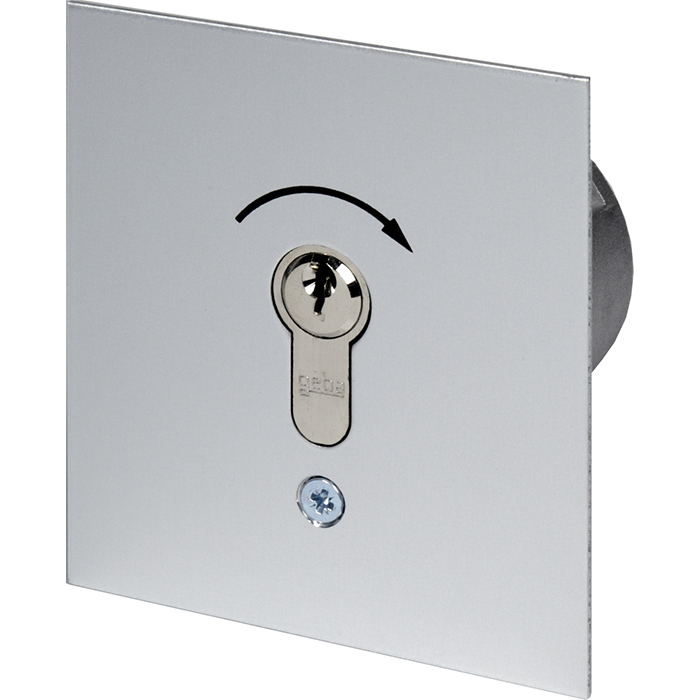 Infälld rund nyckelbrytare med mekaniskt lås på lådan, levereras med profilcylinder och 3 nycklar, lättmetallhölje, skyddsklass IP 54. Microswitch-insats. (Kan ändras). 1T - Returfjäder, 1-sidig, nyckel infällbar i OFF-läge