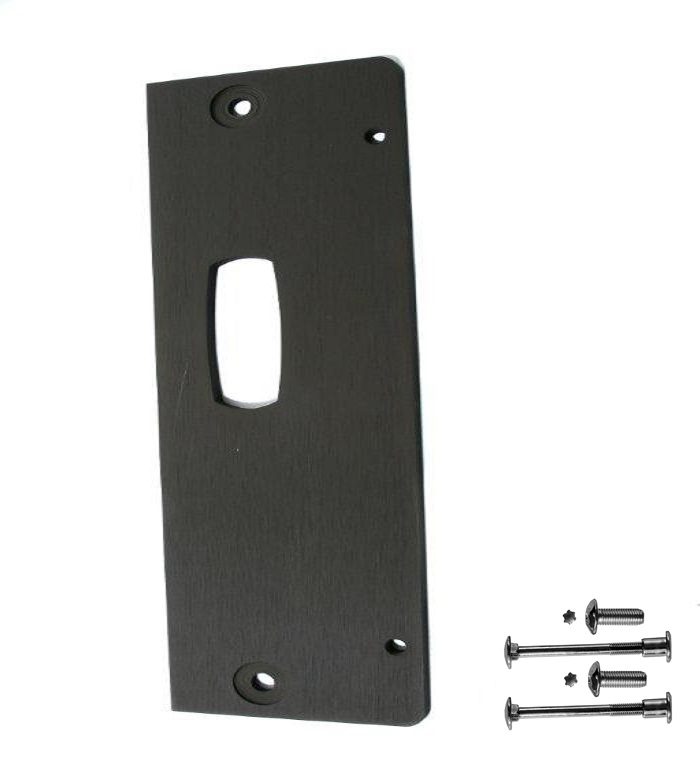 Beskrivning: Inbrottsskyddande förstärkningsbehör för utåtgående aluminiumdörrar med smalprofillås. Förstärkningsbehören har en ”kopplande” funktion, d v s i form av ”dubbar” som slår in i dörrkarmen då dörren stängs. Urtag är gjorda för ASSA 3580 respektive långskylt. Material: Aluminium Mått: 8x100x330 Yta: Naturelox alt. brunelox