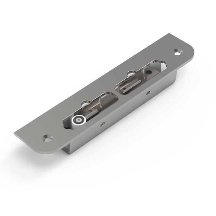 106-4 är anpassad för användning i trä- eller stålkarmar tillsammans med motorlås i 5000 eller 6000 serierna. Slutbleck 106-4 är certifierad enligt SSF 3522 låsklass 5. Levereras komplett med justerbar magnet. Tillverkad i rostfritt stål. Plösmått: 20.5 mm