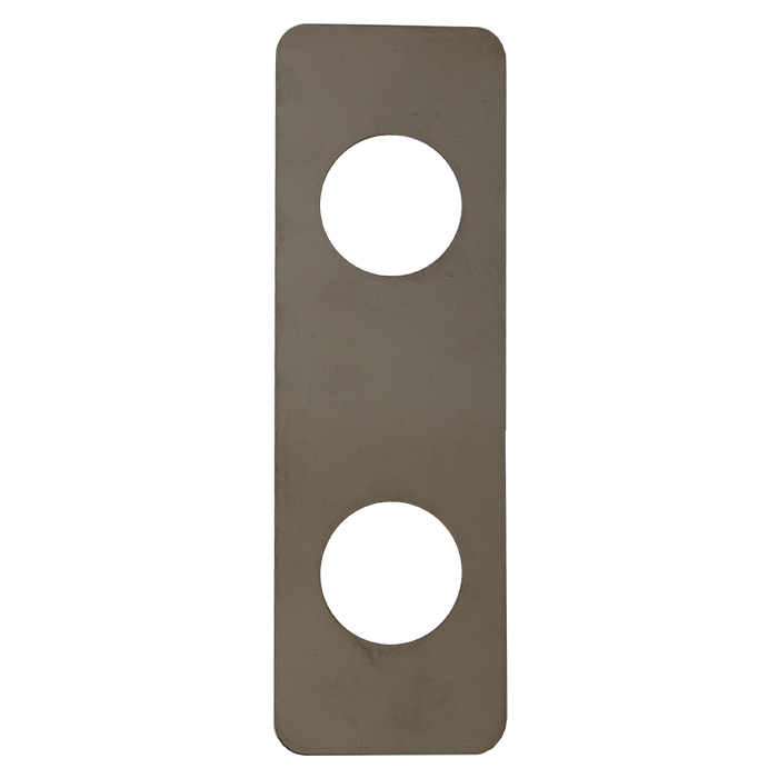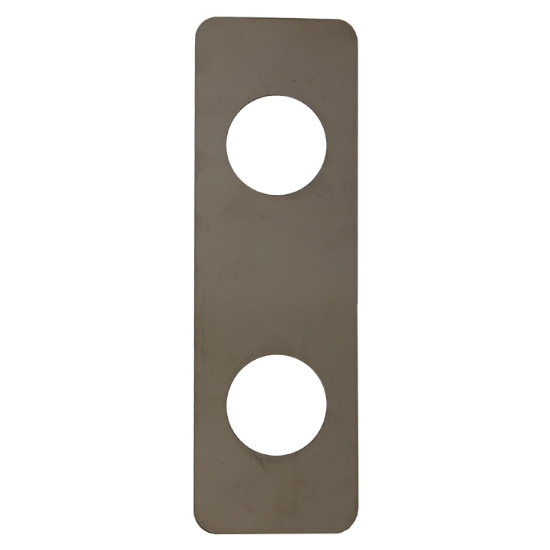 Täckplåtar med två håluttag som täcker både cylinder och trycke som används för att dölja gamla borrhål vid montering av nya lås. Finns i olika längder och i utförandena rostfritt.