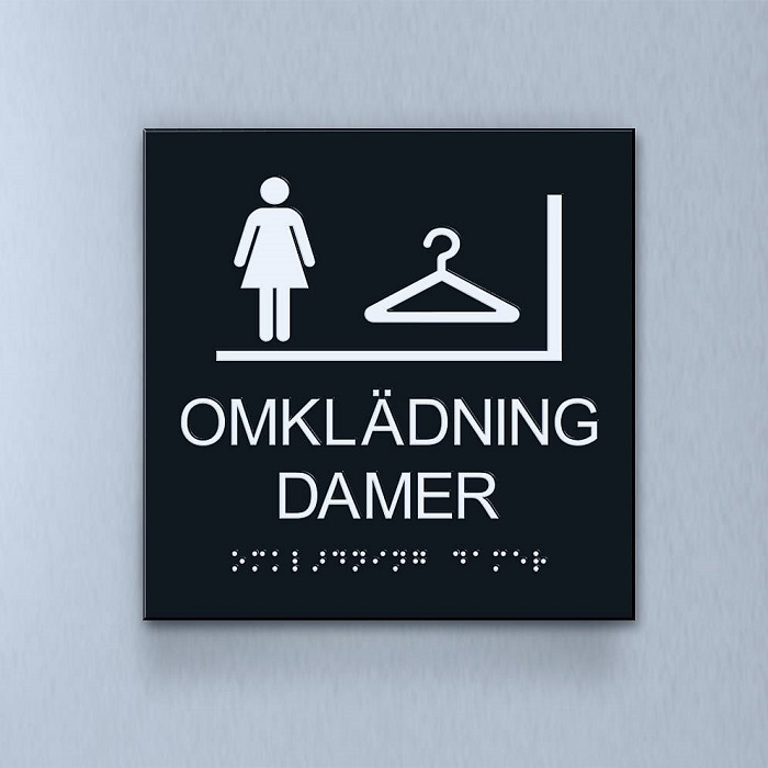 Taktil piktogram: damernas omklädningsrum, 180X180mm svart