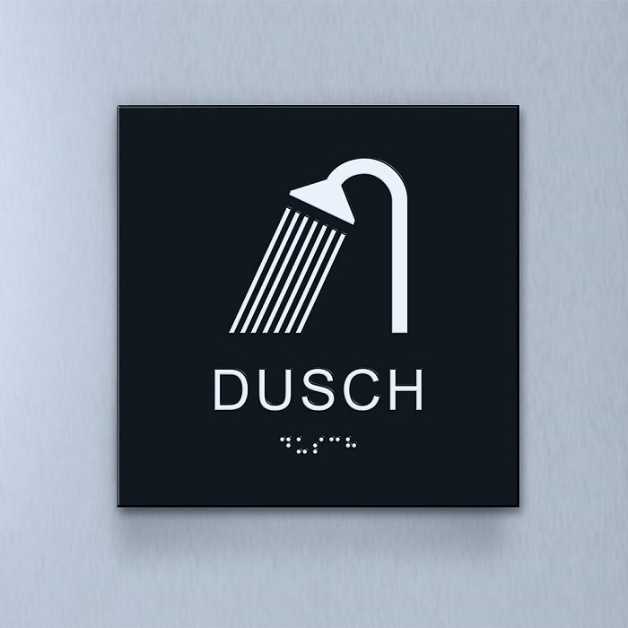Ett taktilt piktogram med text är den vanligaste varianten av taktila skyltar. Det innehåller en tydlig symbol, text och punktskrift och blir på så sätt enkel och tydlig att förstå. Texten är skriven med ett rakt och enkelt typsnitt som är lätt att läsa, både för seende och för personer med en synnedsättning som läser med känseln från fingrarna.