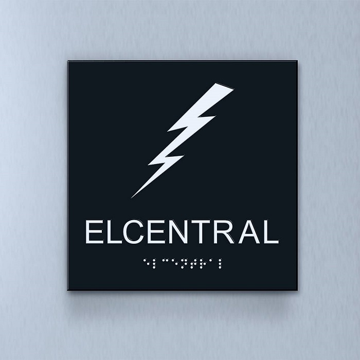 Ett taktilt piktogram med text är den vanligaste varianten av taktila skyltar. Det innehåller en tydlig symbol, text och punktskrift och blir på så sätt enkel och tydlig att förstå. Texten är skriven med ett rakt och enkelt typsnitt som är lätt att läsa, både för seende och för personer med en synnedsättning som läser med känseln från fingrarna.