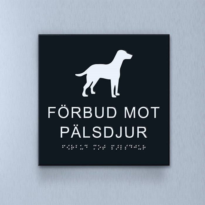 Taktil piktogram: Förbud mot Pälsdjur, 180X180mm svart