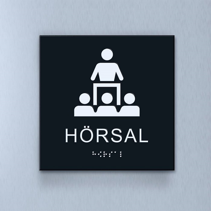 Taktil piktogram: Hörsal, 180X180mm svart