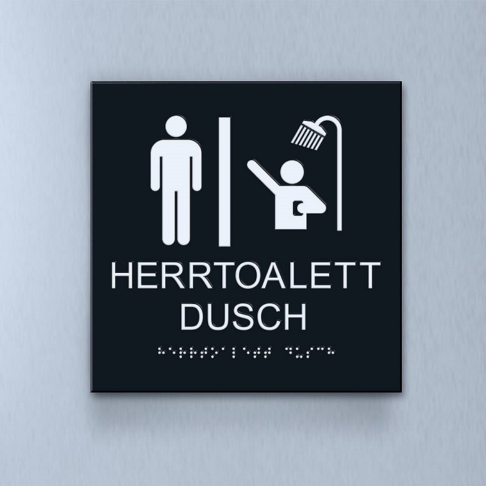 Taktil piktogram: Herrtoalett & Dusch, 180X180mm svart