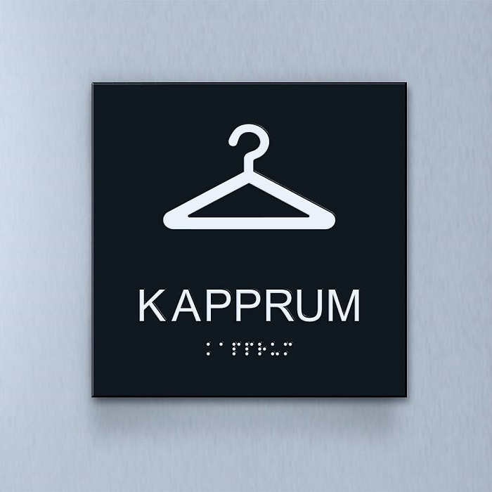 Ett taktilt piktogram med text är den vanligaste varianten av taktila skyltar. Det innehåller en tydlig symbol, text och punktskrift och blir på så sätt enkel och tydlig att förstå. Texten är skriven med ett rakt och enkelt typsnitt som är lätt att läsa, både för seende och för personer med en synnedsättning som läser med känseln från fingrarna.