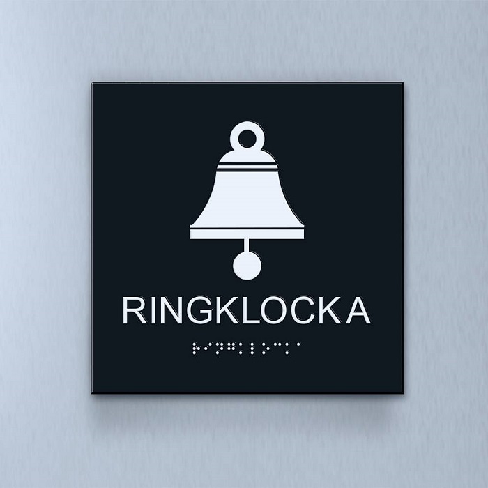 Ett taktilt piktogram med text är den vanligaste varianten av taktila skyltar. Det innehåller en tydlig symbol, text och punktskrift och blir på så sätt enkel och tydlig att förstå. Texten är skriven med ett rakt och enkelt typsnitt som är lätt att läsa, både för seende och för personer med en synnedsättning som läser med känseln från fingrarna.