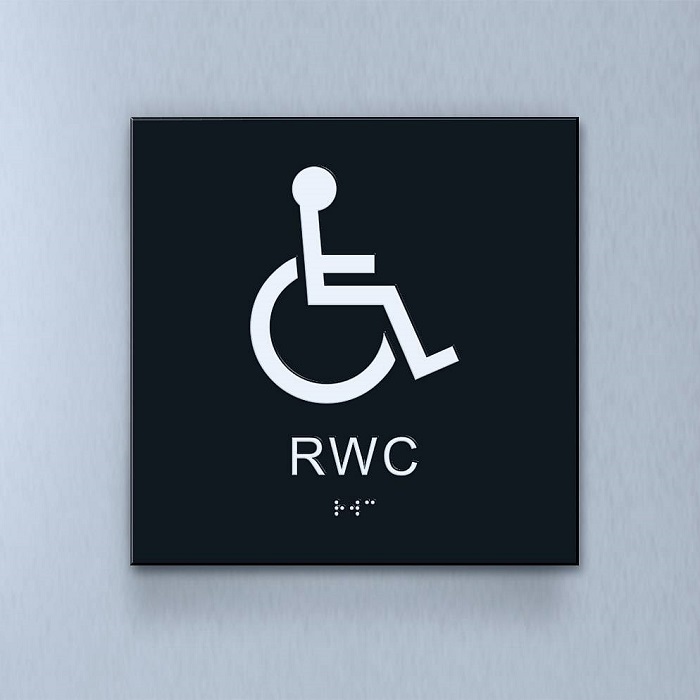 Ett taktilt piktogram med text är den vanligaste varianten av taktila skyltar. Det innehåller en tydlig symbol, text och punktskrift och blir på så sätt enkel och tydlig att förstå. Texten är skriven med ett rakt och enkelt typsnitt som är lätt att läsa, både för seende och för personer med en synnedsättning som läser med känseln från fingrarna.
