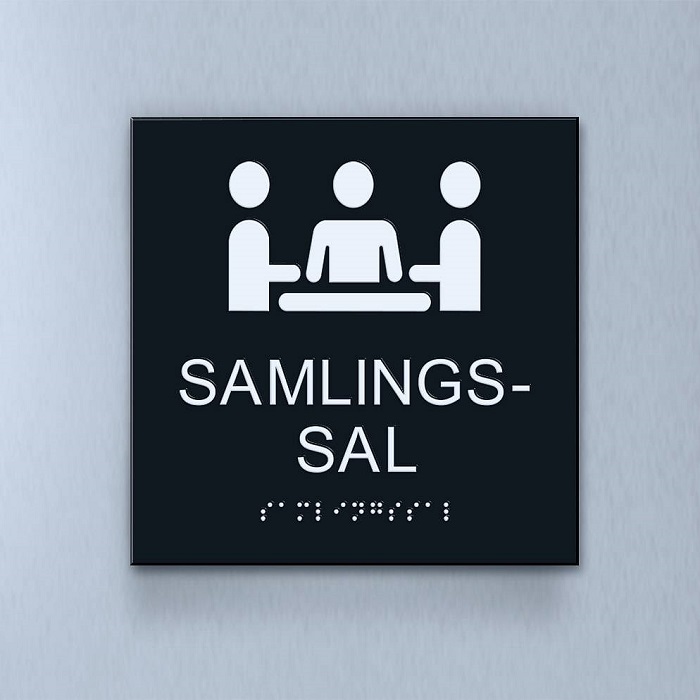 Taktil piktogram: Samlingssal, 180X180mm svart
