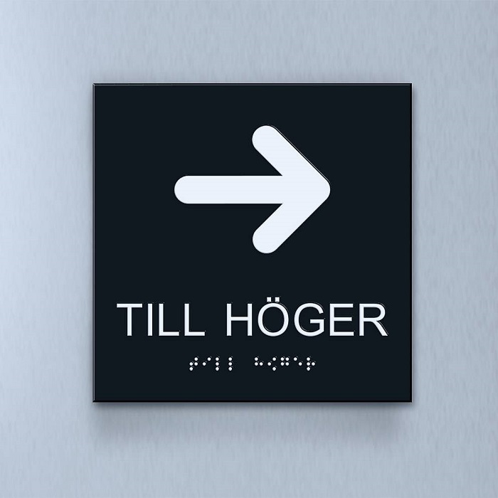 Ett taktilt piktogram med text är den vanligaste varianten av taktila skyltar. Det innehåller en tydlig symbol, text och punktskrift och blir på så sätt enkel och tydlig att förstå. Texten är skriven med ett rakt och enkelt typsnitt som är lätt att läsa, både för seende och för personer med en synnedsättning som läser med känseln från fingrarna.